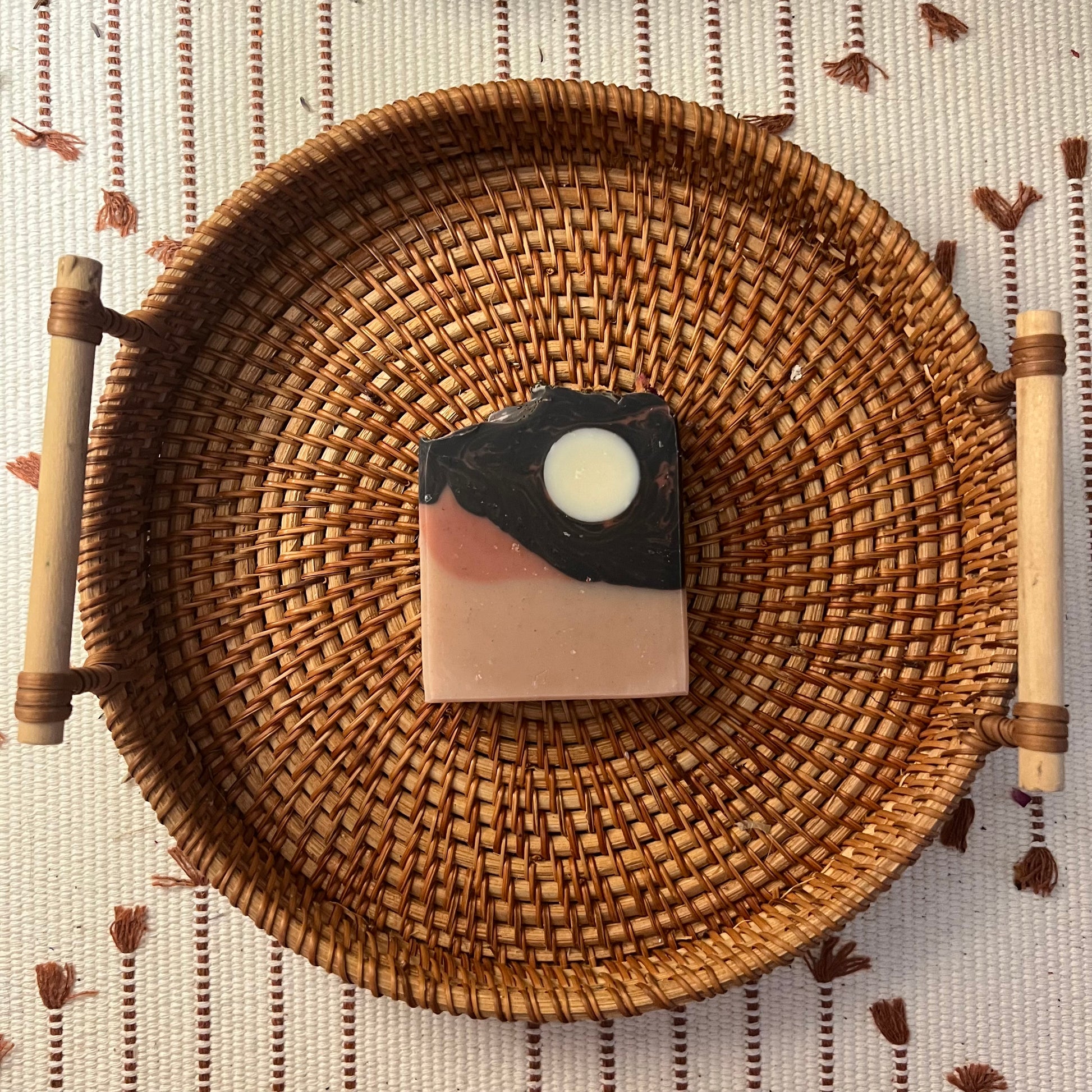 Celestial Moon is a handcrafted, aromatherapy soap bar designed to calm the mind and elevate your skincare routine. This celestial-inspired blend features pure lavender, camphor, cedarwood, and frankincense essential oils for a soothing, spa-like scent, while rose clay, beetroot, and activated charcoal create a beautifully swirled night-sky design. Perfect for sensitive skin, daily cleansing, and anyone seeking a relaxing, luxurious natural soap.