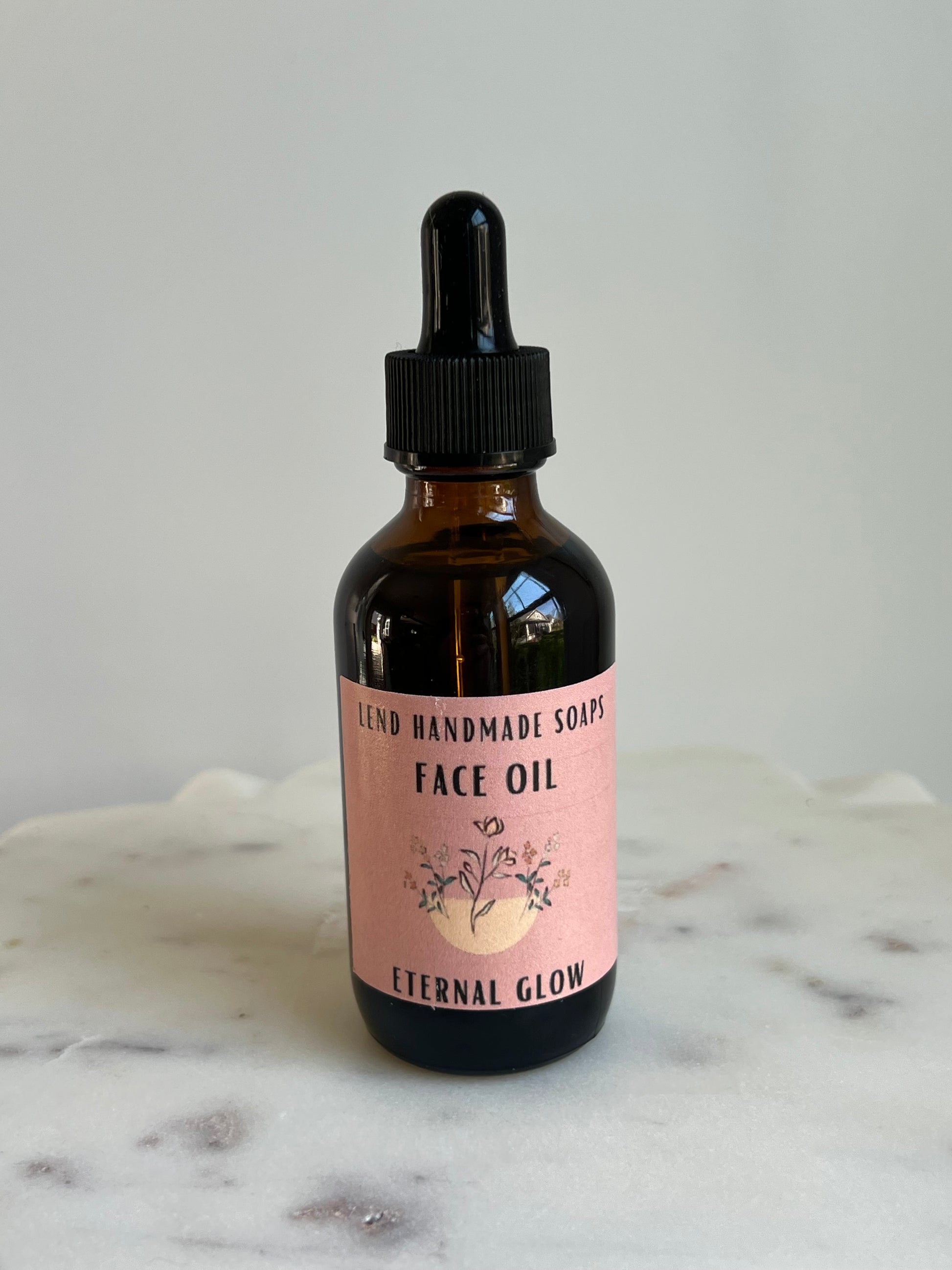 Ingredients: jojoba oil, grapeseed oil, olive oil, essential oil combo of: lavender, frankincense, geranium & helichrysum.