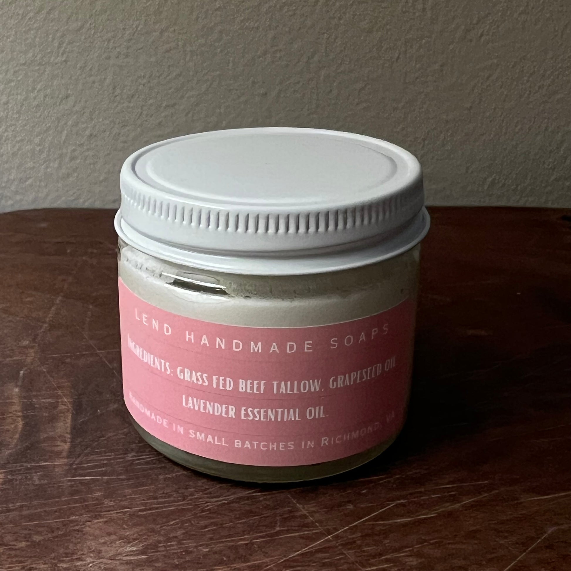 Ingredients: Grass-fed beef tallow, grape seed oil, lavender essential oil.