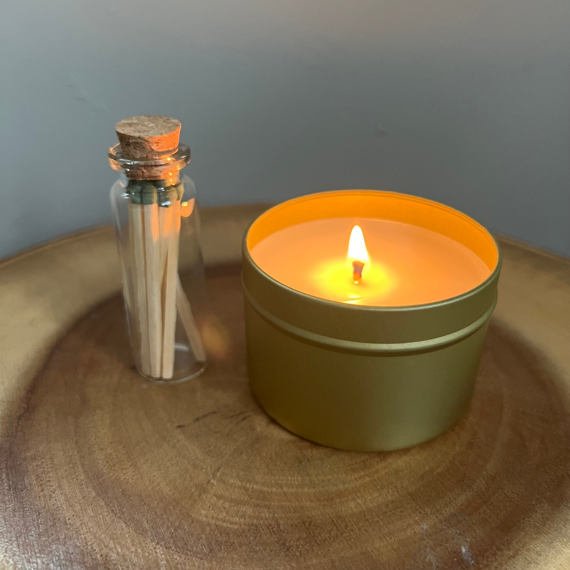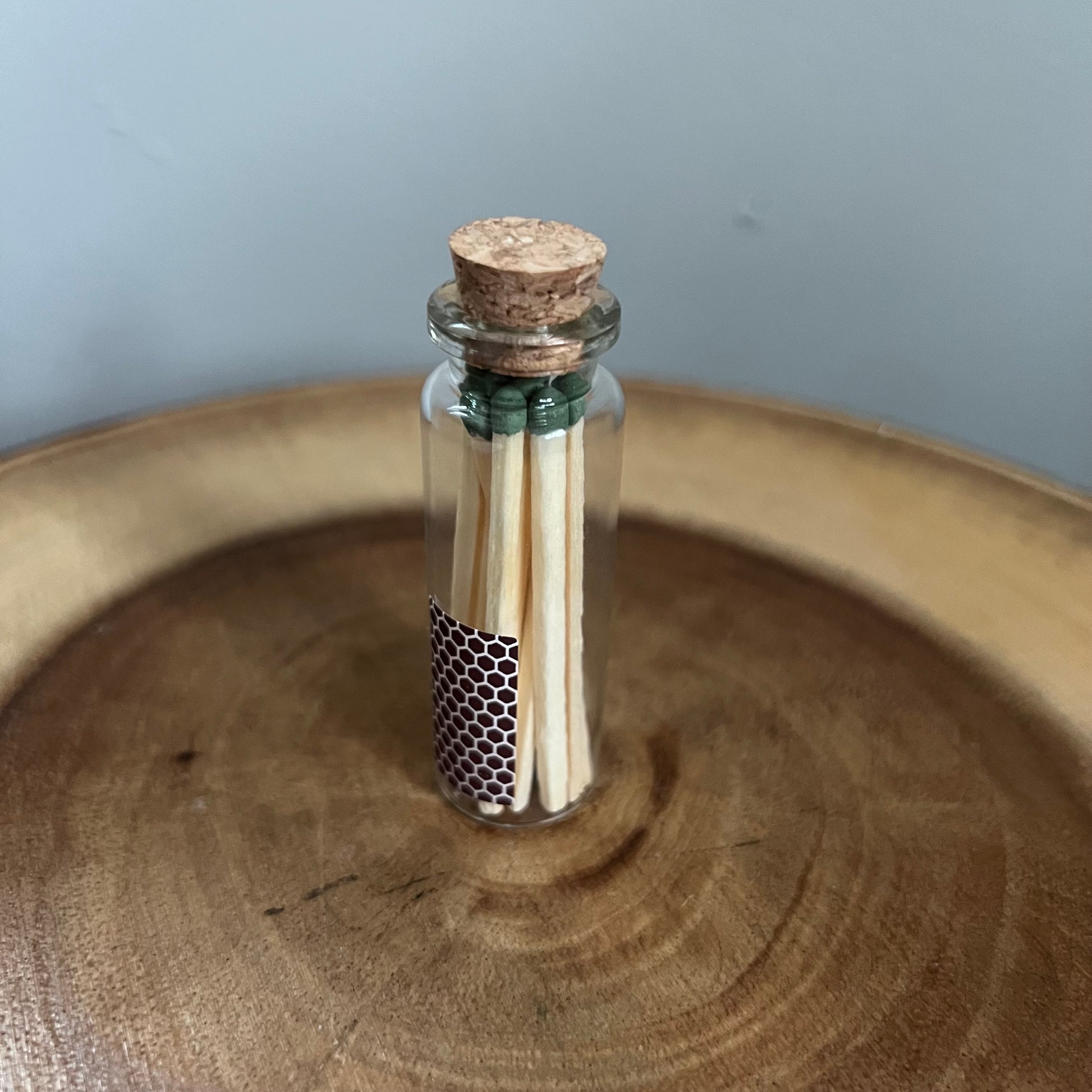 An adorable glass bottle with 10 matches inside- complete with a convenient striker on the side of the bottle.